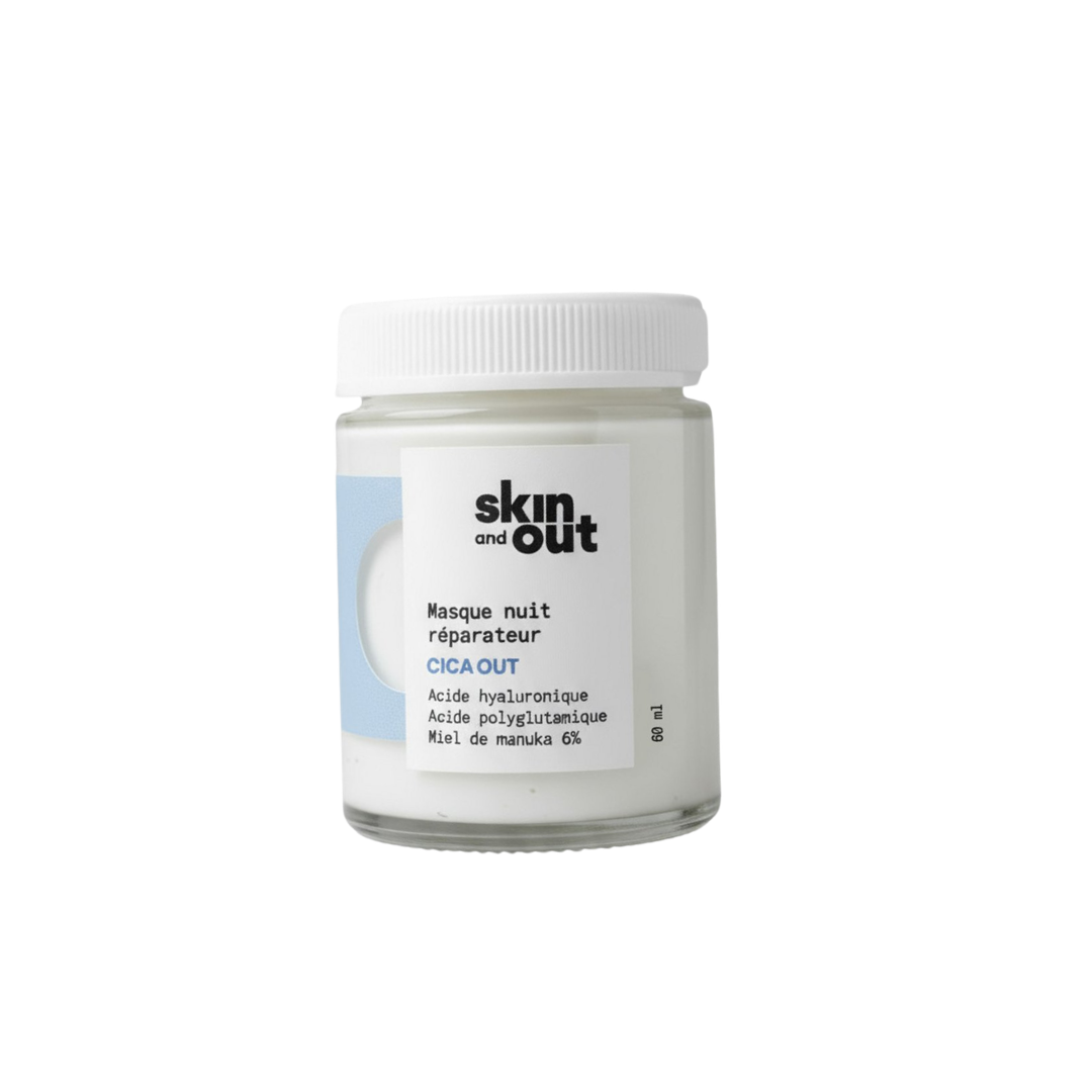 Le Masque nuit réparateur Cica OUT de chez Skin and Out associe 3 actifs qui agissent en synergie pour hydrater en profondeur, renforcer la barrière cutanée et stimuler la réparation des tissus. Son action prolongée pendant toute la nuit accompagne la peau dans son moment clé de régénération, pour lui redonner l’équilibre dont elle a besoin afin de réduire l’acné et accélérer la cicatrisation.